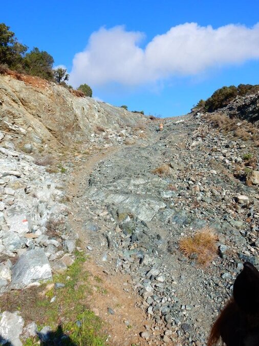 Il sentiero sale su per la cava ed aggira Monte Carvoli sul versante est. Da qui è possibile deviare dal percorso principale e salire in cima al monte trovando i resti della fortezza d’altura etrusca .