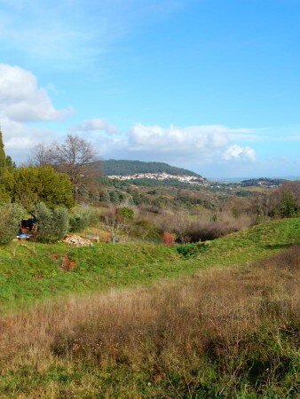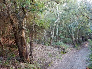 Attraversato l'asfalto si prosegue sulla Via di Poggio D'Arco, strada inghiaiata immersa in un suggestivo bosco caratterizzato dalla presenza di moltissime sughere. Dopo il "Capannino" si fiancheggia sul versante ovest il Poggio D'Arco sulla cui cima si trovano i resti dell'ononimo mulino a vento, ed infine si raggiunge la Strada del Mille in località la Malavolta.