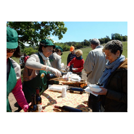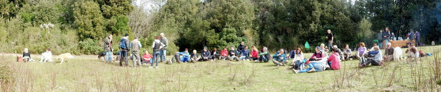L'escursione è stata coronata, grazie alle cuoche e agli altri volontari del cssto, dal banchetto preparato allestito ai bordi di un ampio prato circondato dalla macchia; sono stati serviti una gustosissima ribollita (tanto per rimanere in tema), dolcetti, acqua, vino ed addirittura il caffè, mentre alcuni cavalli pascolavano tranquillamente in mezzo alle persone.