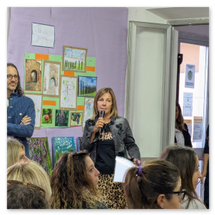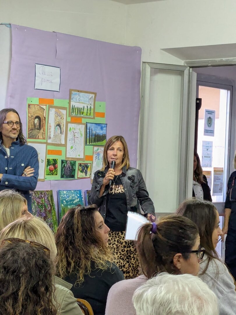 Poi è intervenuta Laura Capaccioli che ha parlato a nome delle associazioni promotrici del progetto "Coloriamo i paesi collinari del comune di Rosignano Marittimo". Ha raccontato come è nato il progetto, come intende svilupparsi e dei motivi che hanno spinto le associazioni a coinvolgere le scuole:"Il nostro obiettivo è quello di suscitare nei bambini curiosità e senso di appartenenza, consapevoli che i bambini sono portatori di messaggi importanti, capaci di trasmetterli alle famiglie e alla comunità.