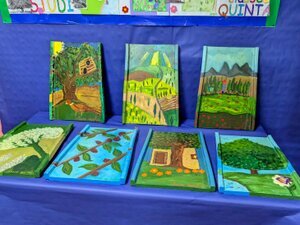 "Un grazie speciale a Marco, Matteo, Nadia e Paolo, i preziosi pittori che hanno saputo guidare le nostre mani, ci hanno aiutato a scegliere i colori e ad esprimere le nostre emozioni nella realizzazione di paesaggi ed elementi naturali propri delle nostre dolci colline"