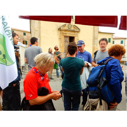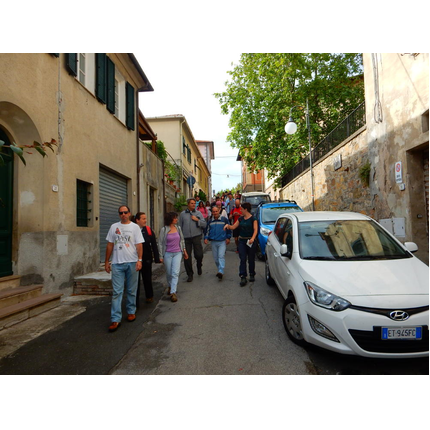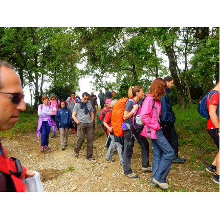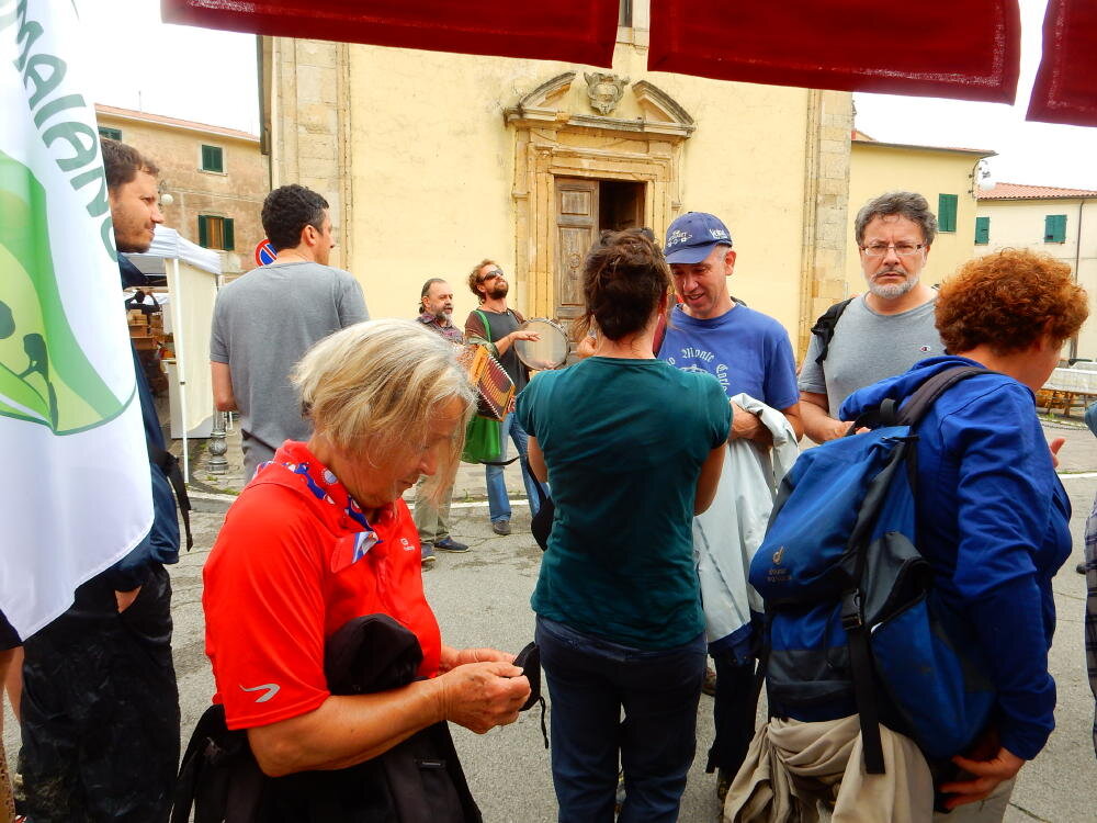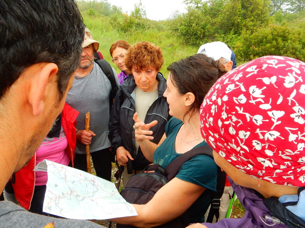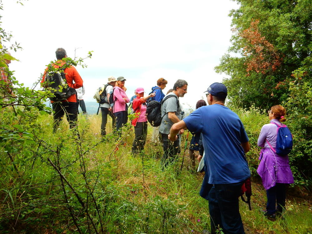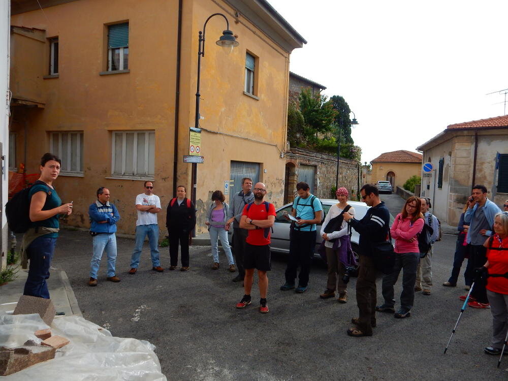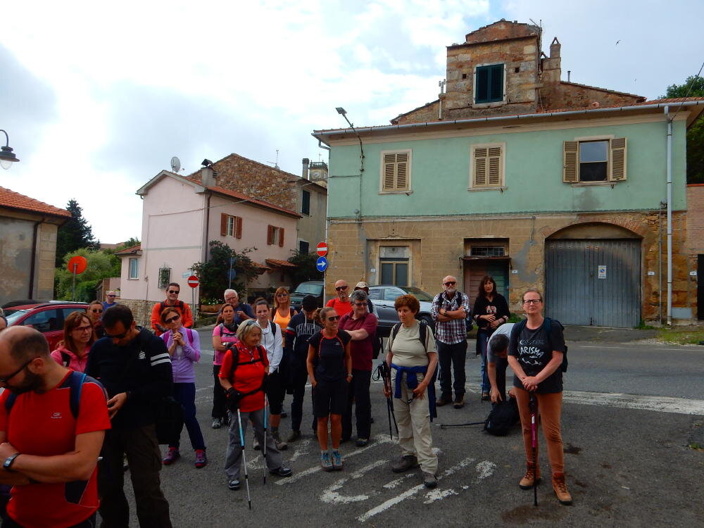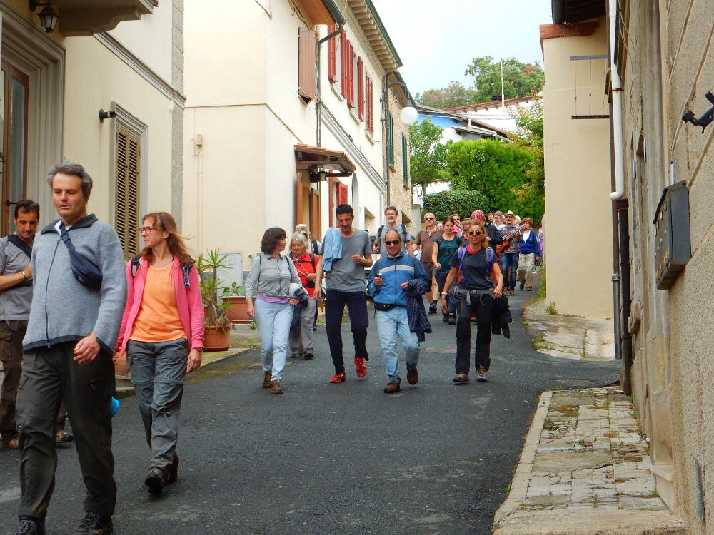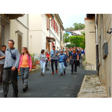 Nonostante le pessime previsoni meteo, quasi 40 partecipanti hanno intrapreso il cammino lungo i sentieri del Parco Culturale di Camaiano, scendendo dapprima verso la valle del Riardo lungo la Strada del Mille (sentiero 199). Dopo il guado del botro Scaforno è iniziato la preannunciata pioggia ma nessuno si è perso d'animo; dopo aver lasciato il 199 è iniziata la salita lungo il percorso "Ponte Romano - Monte Carvoli" passando dalla Fattoria di Paltratico e da Villa Forti fino ad arrivare a Piazza Mattiola. Attraversata la via del Vaiolo, il gruppo degli intrepidi pastori bagnati si è diretto a Pian dei Lupi dove si trova l'omonima azienda che alleva pecore e capre e produce dell'ottimo formaggio; alcuni dei partecipanti hanno colto l'occasione di acquistarne qualche forma. Giunti infine al Laghetto delle Serre al Monte Pelato, dopo una piccola pausa per fare la consueta fotografia di gruppo, è stata imboccata l'estremità sud della Strada del Mille che riconduce fino a Castelnuovo della Misericordia lungo l'antica mulattiera del Poggio Terra Rossa, ripulita il giorno precedente proprio per questa occasione. Poco prima di arrivare in paese, il gruppo è stato accolto a sorpresa dall'allegra musica dei cantamaggio.