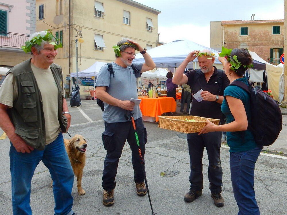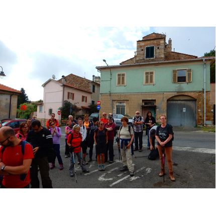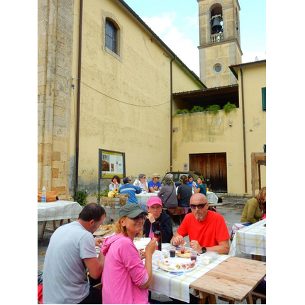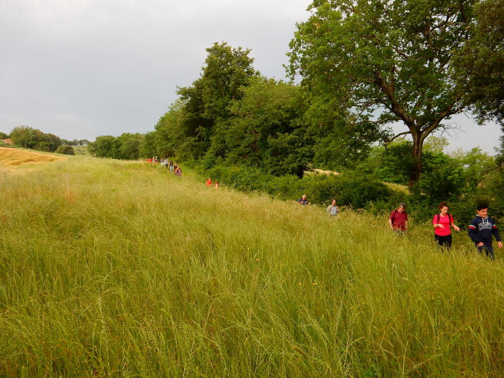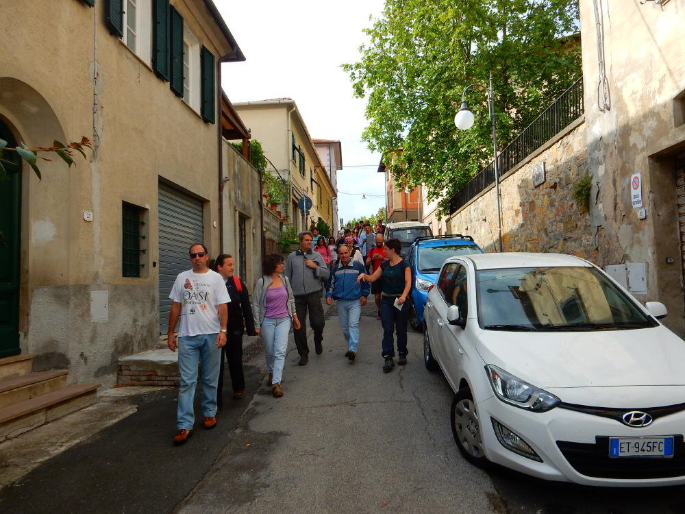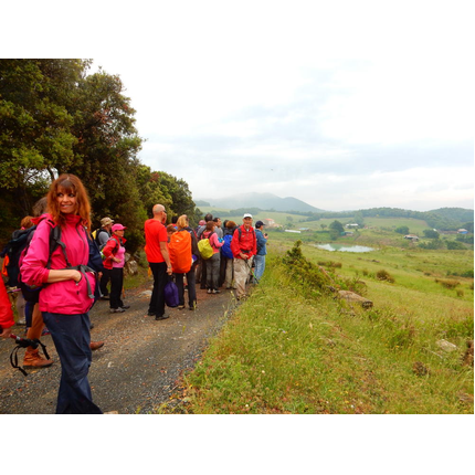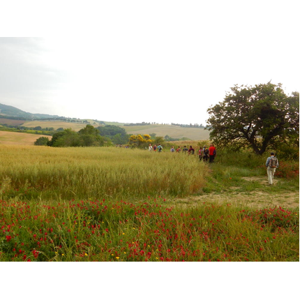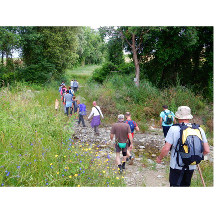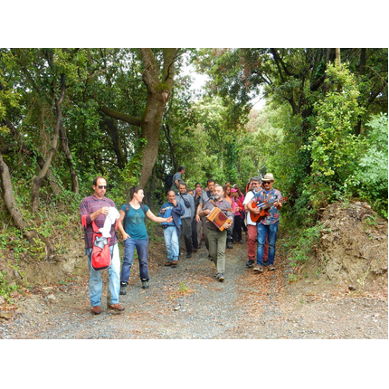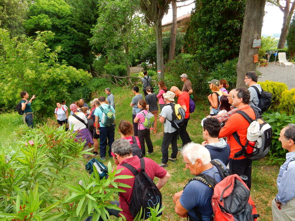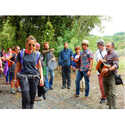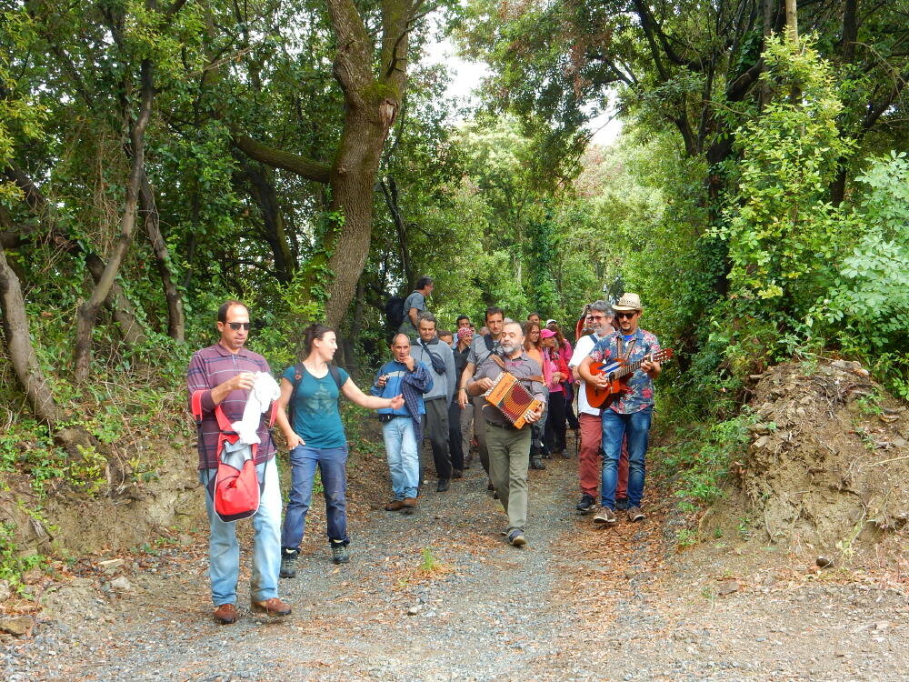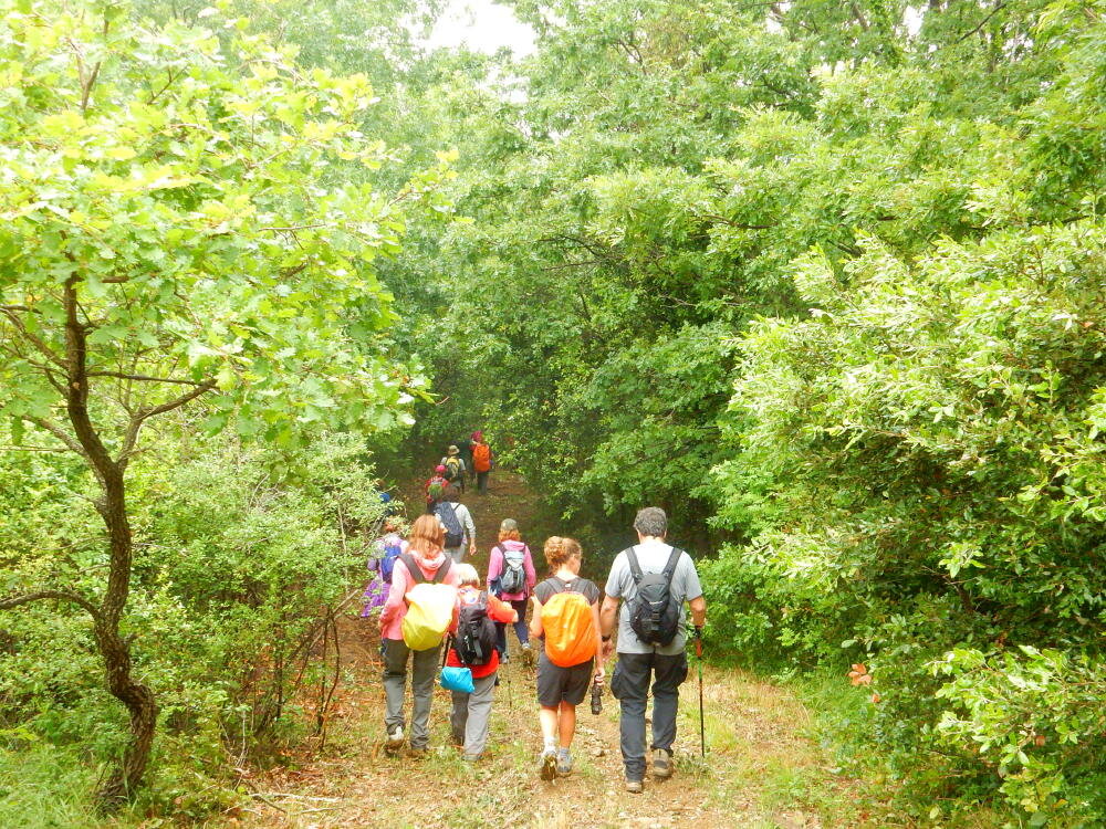 Nonostante le pessime previsoni meteo, quasi 40 partecipanti hanno intrapreso il cammino lungo i sentieri del Parco Culturale di Camaiano, scendendo dapprima verso la valle del Riardo lungo la Strada del Mille (sentiero 199). Dopo il guado del botro Scaforno è iniziato la preannunciata pioggia ma nessuno si è perso d'animo; dopo aver lasciato il 199 è iniziata la salita lungo il percorso "Ponte Romano - Monte Carvoli" passando dalla Fattoria di Paltratico e da Villa Forti fino ad arrivare a Piazza Mattiola. Attraversata la via del Vaiolo, il gruppo degli intrepidi pastori bagnati si è diretto a Pian dei Lupi dove si trova l'omonima azienda che alleva pecore e capre e produce dell'ottimo formaggio; alcuni dei partecipanti hanno colto l'occasione di acquistarne qualche forma. Giunti infine al Laghetto delle Serre al Monte Pelato, dopo una piccola pausa per fare la consueta fotografia di gruppo, è stata imboccata l'estremità sud della Strada del Mille che riconduce fino a Castelnuovo della Misericordia lungo l'antica mulattiera del Poggio Terra Rossa, ripulita il giorno precedente proprio per questa occasione. Poco prima di arrivare in paese, il gruppo è stato accolto a sorpresa dall'allegra musica dei cantamaggio.