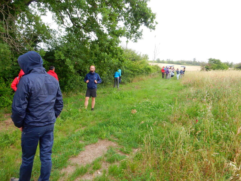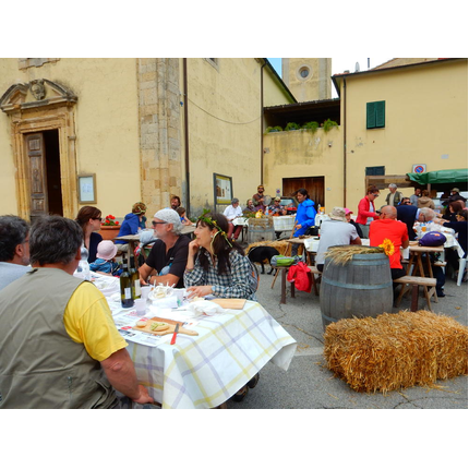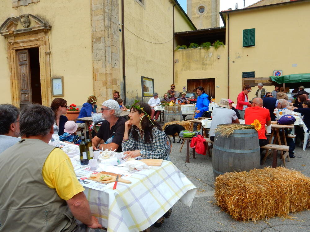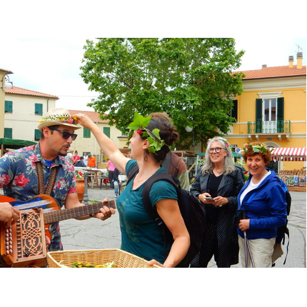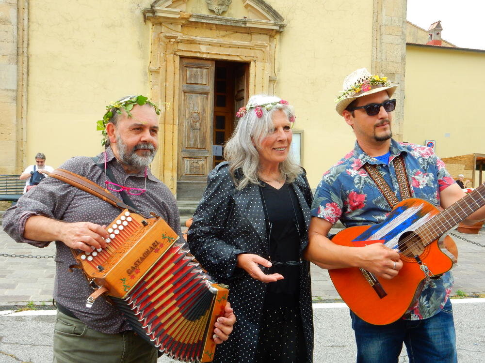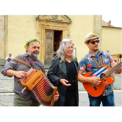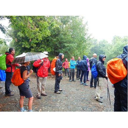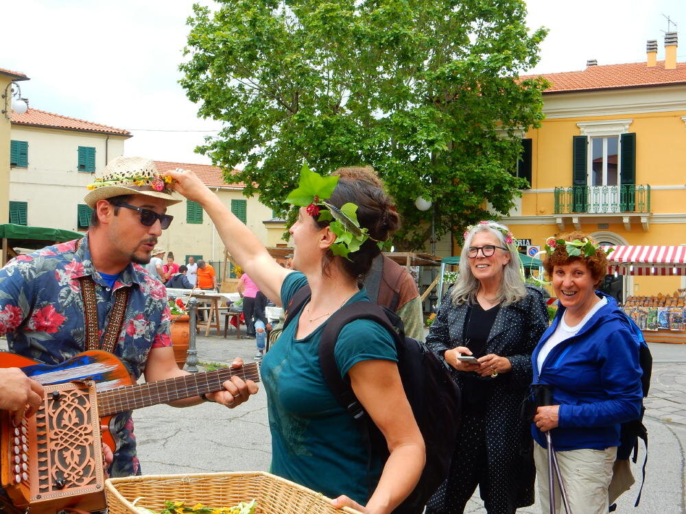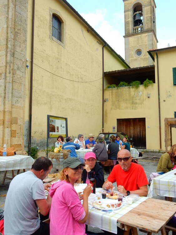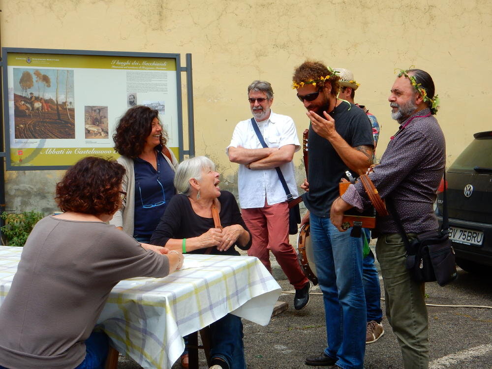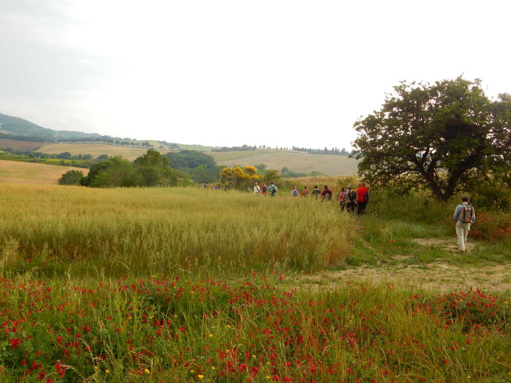 Nonostante le pessime previsoni meteo, quasi 40 partecipanti hanno intrapreso il cammino lungo i sentieri del Parco Culturale di Camaiano, scendendo dapprima verso la valle del Riardo lungo la Strada del Mille (sentiero 199). Dopo il guado del botro Scaforno è iniziato la preannunciata pioggia ma nessuno si è perso d'animo; dopo aver lasciato il 199 è iniziata la salita lungo il percorso "Ponte Romano - Monte Carvoli" passando dalla Fattoria di Paltratico e da Villa Forti fino ad arrivare a Piazza Mattiola. Attraversata la via del Vaiolo, il gruppo degli intrepidi pastori bagnati si è diretto a Pian dei Lupi dove si trova l'omonima azienda che alleva pecore e capre e produce dell'ottimo formaggio; alcuni dei partecipanti hanno colto l'occasione di acquistarne qualche forma. Giunti infine al Laghetto delle Serre al Monte Pelato, dopo una piccola pausa per fare la consueta fotografia di gruppo, è stata imboccata l'estremità sud della Strada del Mille che riconduce fino a Castelnuovo della Misericordia lungo l'antica mulattiera del Poggio Terra Rossa, ripulita il giorno precedente proprio per questa occasione. Poco prima di arrivare in paese, il gruppo è stato accolto a sorpresa dall'allegra musica dei cantamaggio.