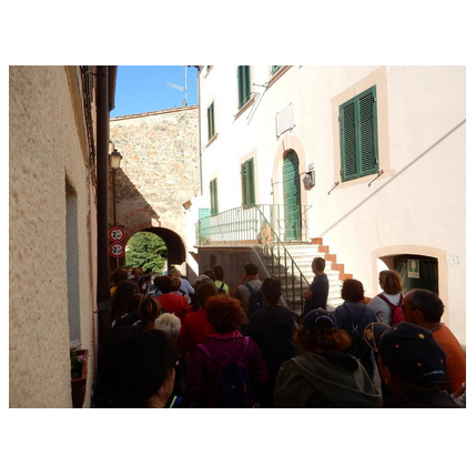 Partendo dall'area Feste del Gabbro, con oltre 50 partecipanti ci siamo avviati verso la parte antica del paese visitando il famoso arco che Silvestro Lega ha rappresentato in uno dei suoi bellissimi quadri raffiguranti il Gabbro, e la casa in cui lo stesso Pittore dimorò per quasi un decennio.