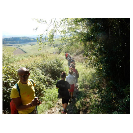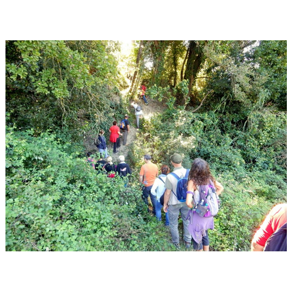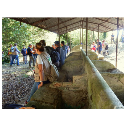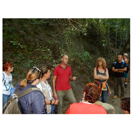 Successivamente il cammino ci ha codotto verso il Botro Sanguigna per visitare l’affioramento, unico in Toscana, di una roccia particolarissima – il “Tripoli di Paltratico” e poi a dei rifugi di guerra, scavati dagli zappatori della prima guerra mondiale nelle arenarie del botro Sanguigna. Da qui, lungo la via del Poggettone, siamo tornati al punto di partenza per gustarci lo squisito pranzo preparato dalla ProLoco del Gabbro.