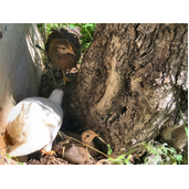 L'ulivo. Fin da piccole sono state molto agili e tendevano a salire in alto, e non ci è voluto molto che scoprissero di poter salire fino in cima all'ulivo che si trova nel loro recinto. Ed è proprio lì che hanno deciso di passare le notti. Non c'è stato verso di abituarli a dormire nella casetta, nemmeno d'inverno quando piove e tira vento; alla fine abbiamo teso un telo sopra la rete della voliera, in corrispondenza del loro posatoio, per proteggerle almeno un minimo dalle intemperie.