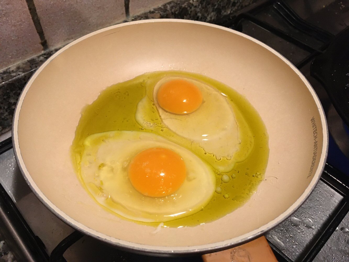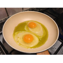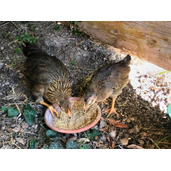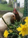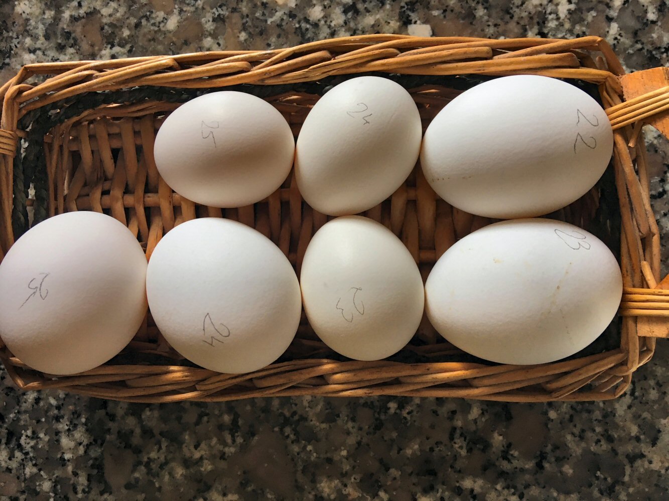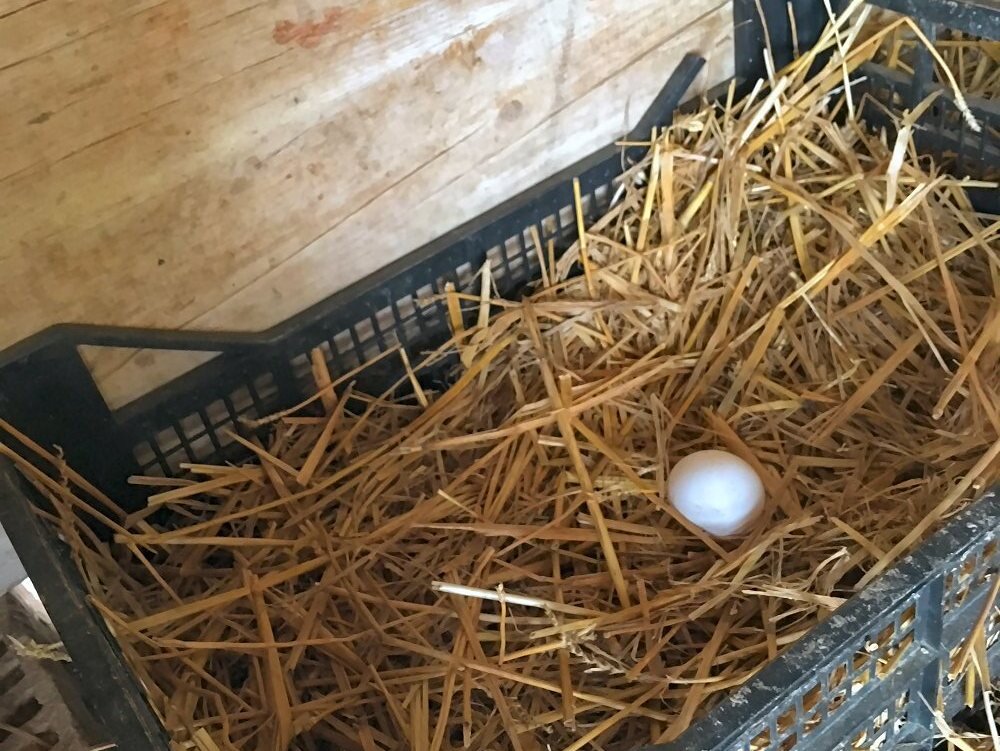 Le uova. Pochi giorni dopo la loro prima uscita, Bianca (la più grande che in quel momento aveva 8 mesi) ha deposto il suo primo uovo, quasi a ringraziarci per la fiducia accordata. Due settimane dopo Nana ha seguito il suo esempio; lei fa delle uova un po' più piccole... per forza, con quel nome! Da allora tutte le mattine ci fanno quel gradito regalo, solo qualche volta una o l'altra salta un giorno.
