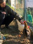 Imparare a consocerle è stata una bellissima esperienza. Mettendosi semplicemente a sedere nel recinto per osservarle, pian piano loro si sono avvicinate, hanno iniziato ad esplorarci, a dare qualche beccatina, a saltarci sulle gambe e presto si sono abituare ad essere grattate sul dorso, a non temerci più e a farsi prendere. Il tutto gratificandole con dei bei mazzetti di erbette selvatiche di cui sono ghiottissime.