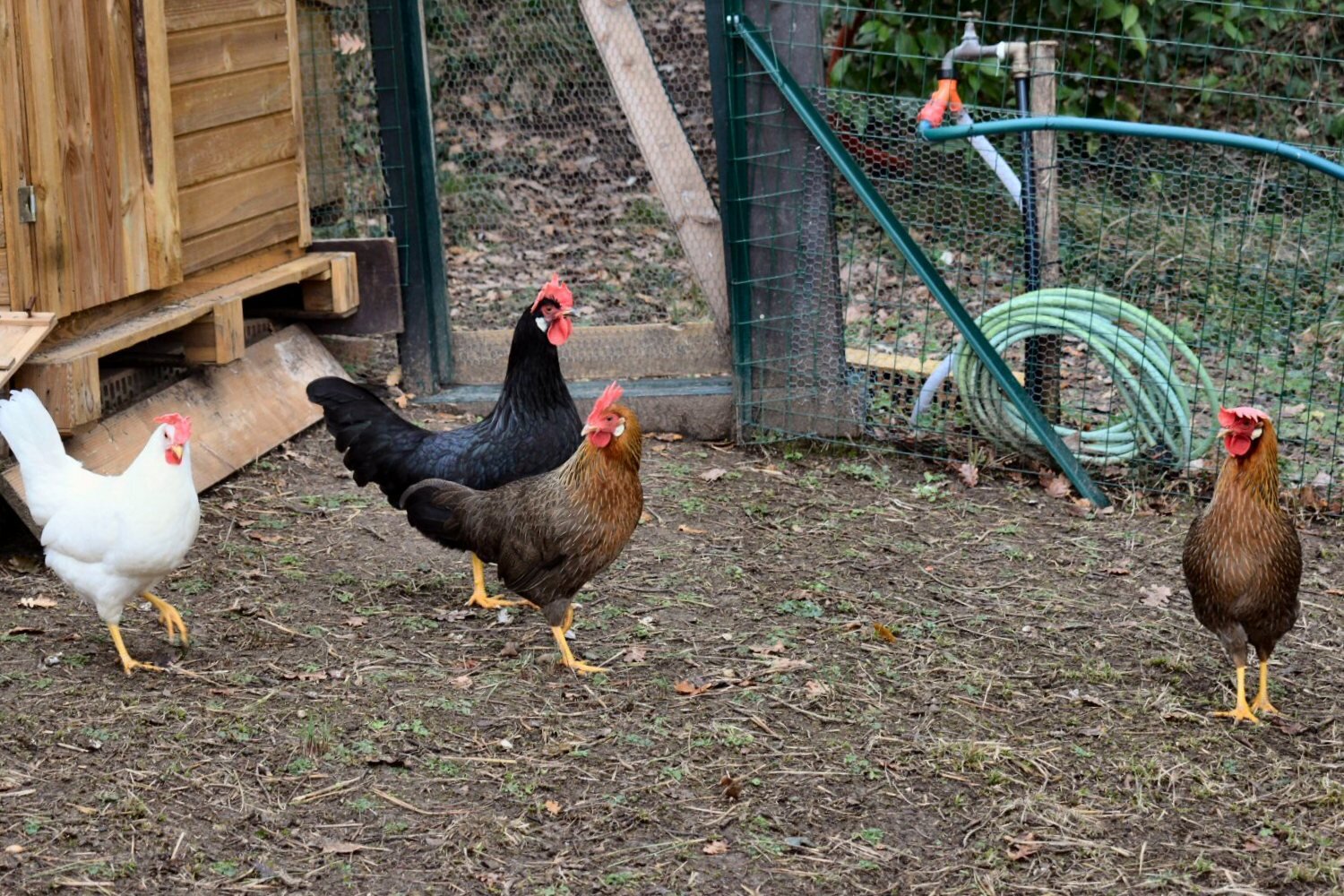 Così, soddisfatti dell’opera compiuta, a ottobre 2019 ospitammo quattro giovani galline provenienti dagli allevamenti delle Cerretelle (due collo oro) e da Cappellese (una bianca e una nera): quattro bellissime e slanciate livornesi che facevano gioia solo a guardarle, ma soprattutto stimolavano l’interesse e la curiosità di nipotini e … gatti!