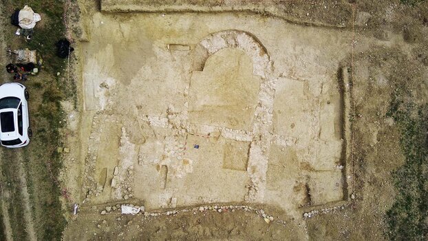 L'indagine, nata dall'osservazione di anomalie nella crescita della vegetazione visibili da satellite, ha confermato la presenza di una struttura a tre navate di circa 36x16 metri con una grande terminazione absidata.