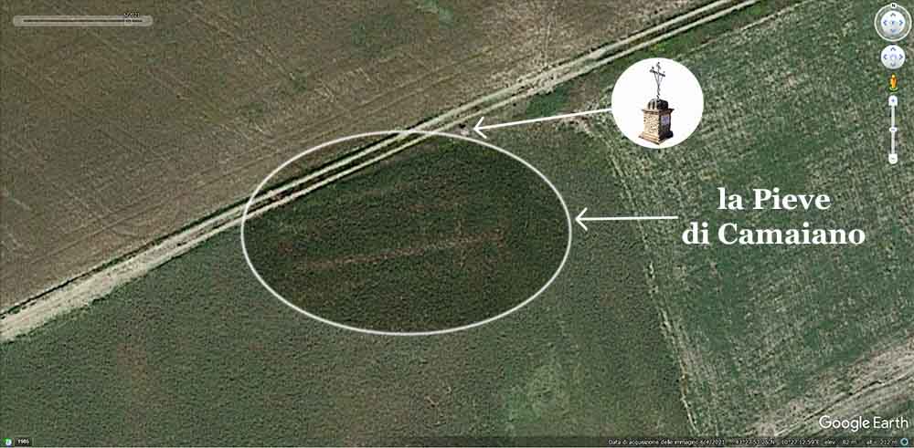 Ormai da molte generazioni si credeva che l'edificio della Pieve di Camaiano fosse completamente perduto ma ciononostante, grazie alle antiche testimonianze e al ritrovamento di numerosi reperti sui campi circostanti si è potuto fare una stima piuttosto precisa della sua posizione. Così nel 2017 la nostra associazione (allora comitato CSSTO onlus) eresse una croce commemorativa nel luogo individuato.Ma un bel giorno, per la precisione l'11 agosto 2023, ci giunse un'e-mail che cambiò tutto;