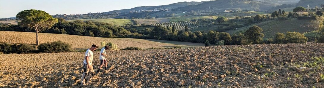 Nel mese di settembre del 2023, prima dell'inizio degli scavi, sono state effettuate delle ricerche di superficie per raccogliere dati fondamentali per la comprensione del sito di Camaiano: sono stati cercati reperti archeologici come frammenti di ceramica, mattoni, coppi o altro, visibili ad occhio sulla superficie del terreno (in questo caso tra la terra smossa dall'aratro) mappando i diversi ritrovamenti con il gps così da poter osservare eventuali concentrazioni che possano suggerire la presenza di strutture sottostanti.