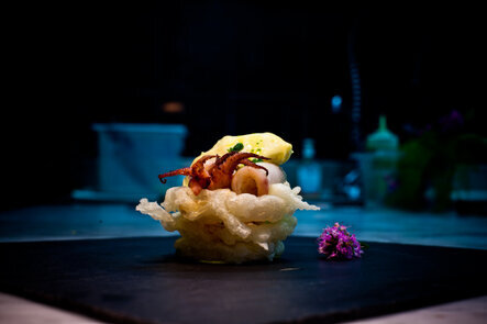 "Calamaro, Cipolla in Tempura e Maionese all'olio Extravergine d'oliva"